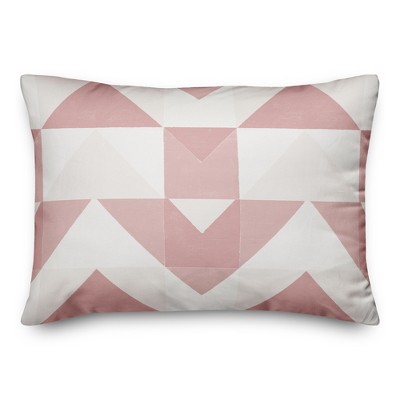 18" X 18" Pink And White Blown Seam Suede Geometric Throw Pillow