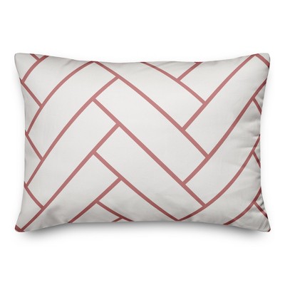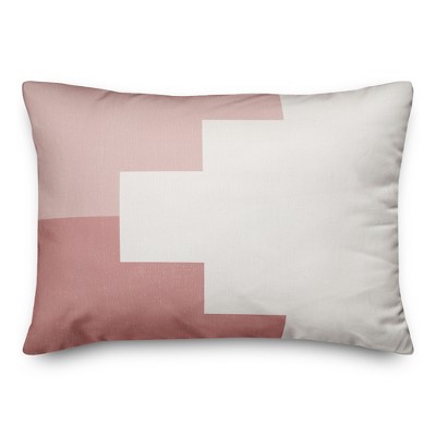 HomeRoots 14" X 36" Pink And Off-White 100% Cotton Geometric Zippered Pillow