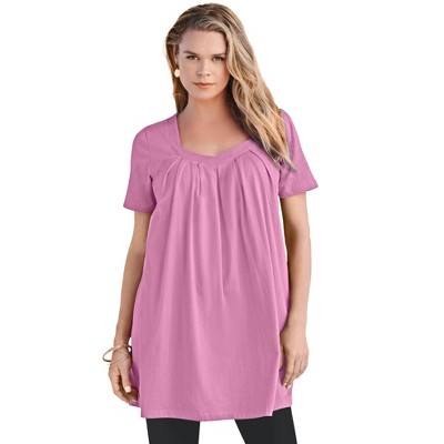 Roaman's Plus Size Cotton Short Sleeve V-Neck Ultimate Tunic