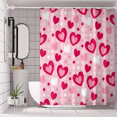 - pink bathroom curtain