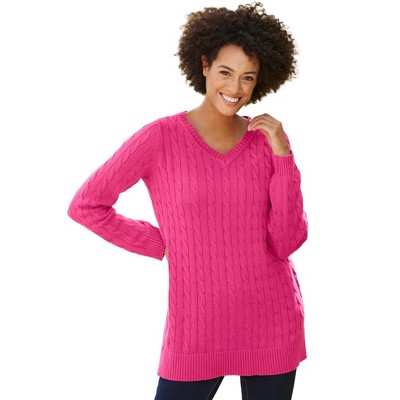 Woman Within Cable Knit V-Neck Pullover Sweater