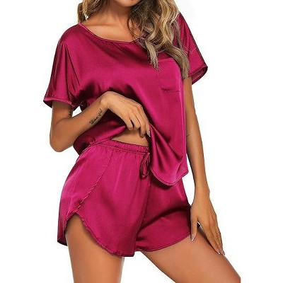 Agnes Orinda Women's Plus Size Satin Lace Trim Ruffle Hem Home Packs Pajama Sets