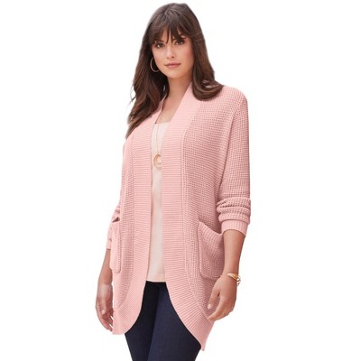 Roaman's Plus Size Scallop Trim Crochet Cardigan