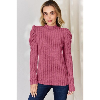 Casual Women Long Sleeve Sweater Fall Ribbed Knit Pullover Loose Crewneck Cable Sweater Jumper Tops