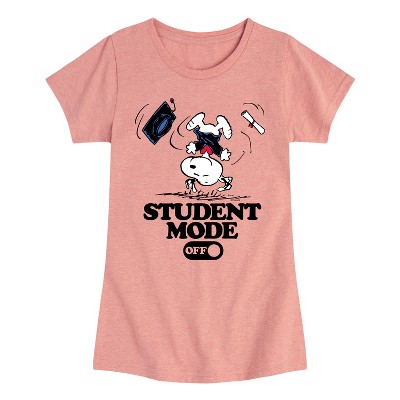 Girls' - Peanuts - Snoopy Flipping Student Mode Off Fitted Short Sleeve Graphic T-Shirt