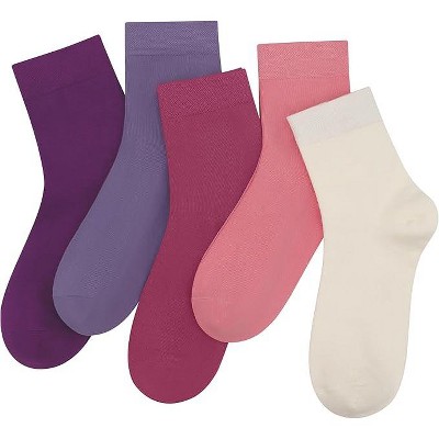 SERISIMPLE Women Thin Viscose Bamboo Socks Crew Lightweight Above Ankle Casual Dress Sock 5 Pairs