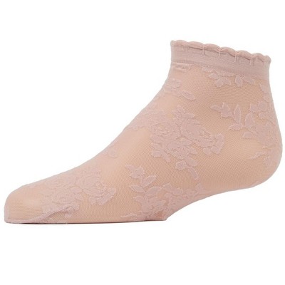 Memoi Botanic Sheer Girls Floral Embroidered Anklet Socks