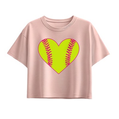 Girls' - Instant Message - Softball Heart Short Sleeve Boxy Graphic T-Shirt