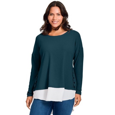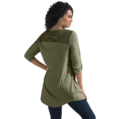 Roaman's Plus Size Soft Knit Tunic With Notch Neckline