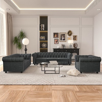 - linen tufted sofa