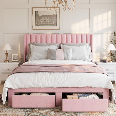 pink upholstered bed
