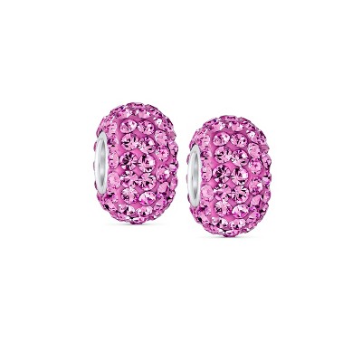 Bling Jewelry Set of 2 Light Pink Magenta Crystal Bead Charm Spacer for European Bracelet Sterling Silver