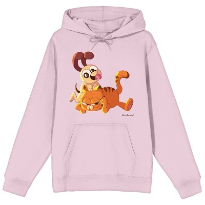 Garfield Odie & Garfield Long Sleeve Cradle Pink Adult Hooded Sweatshirt