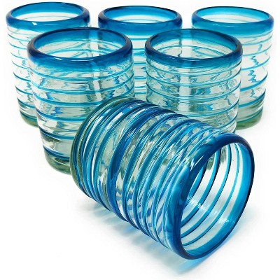 Dos Sueños Mexican Hand Blown Drinking Glasses - Blue Spiral - 14oz - Set of 6