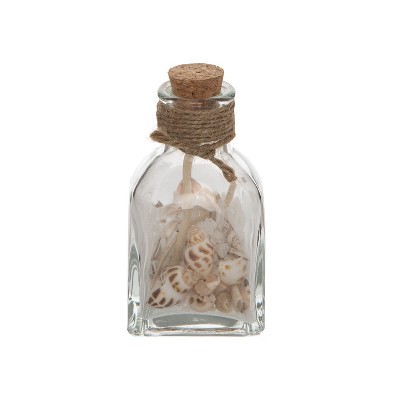 Beachcombers Small Glass Bottle With Shell White Rock & Wood