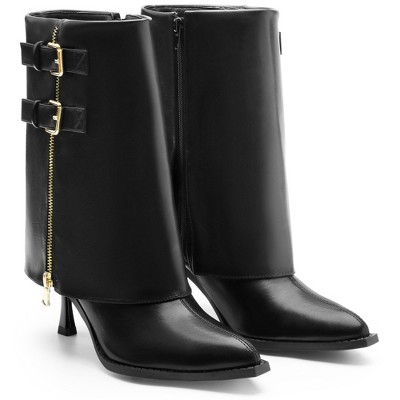 Allegra K Women's Square Toe Side Zip Chunky Heels Ankle Booties