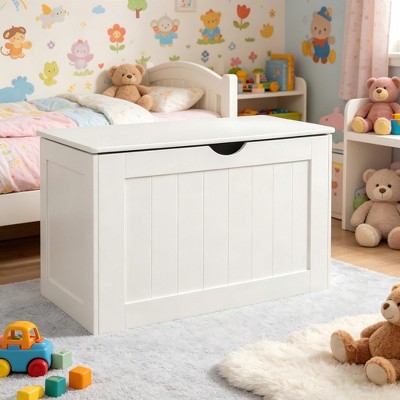 JVNOXK White Lift Top Entryway Storage Cabinet with 2 Safety Hinge, Wooden Toy Box