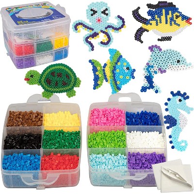 4,000pc Fuse Beads Mermaid w Carrier CASE - 21 Colors, 12 Unique Templates, 2 Peg Boards, Tweezers, Ironing Paper, Case, Bulk Art Craft Project