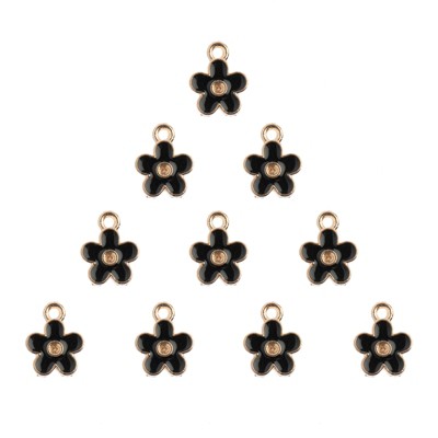 John Bead 10 Pieces 10x12mm Black Flower Sweet & Petite Mini Cute Charms for Jewelry Making DIY Crafts