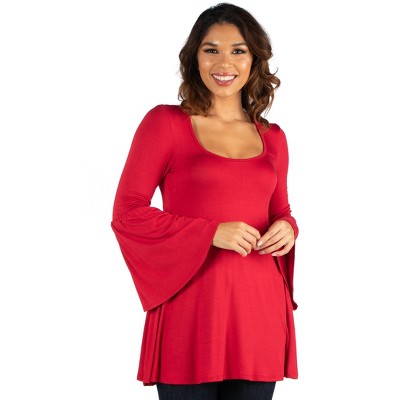 24seven Comfort Apparel Womens Long Bell Sleeve Flared Tunic Top