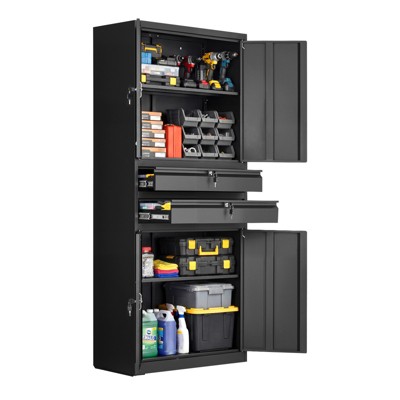 VEVOR Metal Storage Cabinet, 180 lbs Shelf Load Capacity, 70.87" Tall Garage Tool Storage Cabinet with 4 Locking Doors and Shelves, 2 Drawers, Black