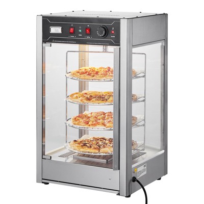 VEVOR Commercial Food Warmer Display for 14" Pizza, 4-Tier Pizza Warmer with Rotary Steam Heating, 86℉~185℉ Temperature Control and Temp Display