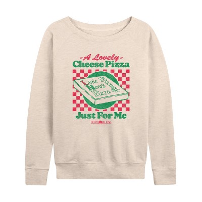 Juniors Womens Home Alone Little Nero's Pizza Pillar Sweatshirt
