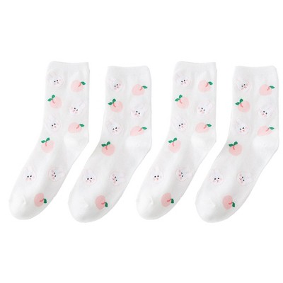 Anna-Kaci Women's 4-Pair Crew Sock Set Smiley Face Print Soft Stretch Knit Comfortable Everyday Socks - Multicolors