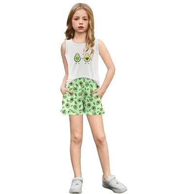 Arshiner Girls Pajamas Summer Ruffle Sleepwear Cute Tank Top and Shorts Set Pjs Outfit