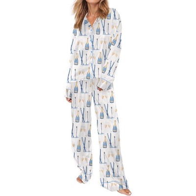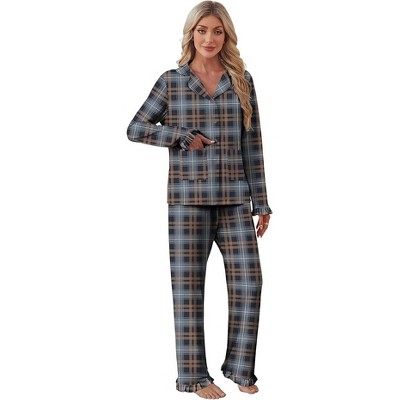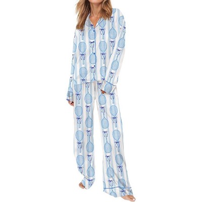 Memoi Women's 2 Piece Purple Blossom Long Sleeve and Tapered Pant Pajama Set