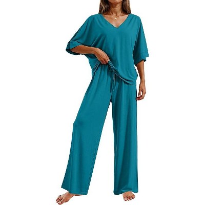 Ekouaer Pajamas for Women Set 2 Piece Lounge Set Soft Pajama Sets Short Sleeve and Pants Pj Sets Loose Sleepwear with Pockets
