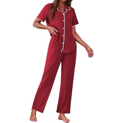 Anna-Kaci Lounge Women's Heart Print Valentine 2-Piece Pajama Set with Long Sleeve Button-Up Top and Relaxed Fit Pants