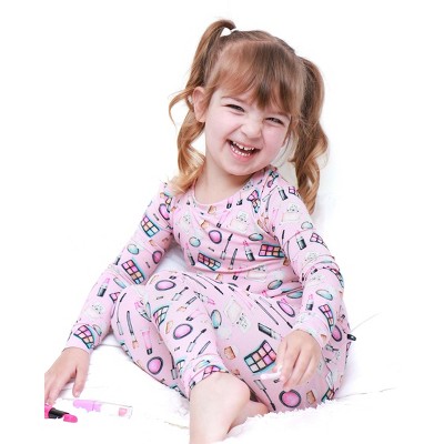Lev Baby Girls' Bamboo Toddler Pajamas – 2-Piece Long Sleeve Makeup Print Set (2T–12/14Y)