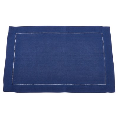 Saro Lifestyle Placemat with Hemstitched Border, 14"x20" Oblong, Navy Blue (Set of 12)