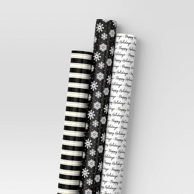 3pk 118"x30" Polka Dot, Striped, and 'Holiday Love' Script Christmas Wrapping Paper Trio Black/White - Sugar Paper™ + Target