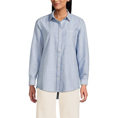 erika Women's Jackie Long Sleeve Roll Tab Stripe Shirt | Blue Green Medium