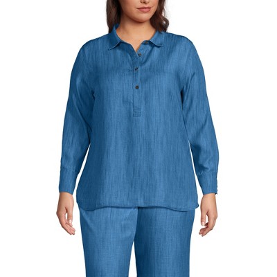 Womens Denim Shirs Puff Sleeve Collar Neck Casual Lightweight Denim Shirt Top