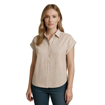 BeachLungeLounge Daria Women's Striped Short SLeeve Shirt | Light Cocoa Small