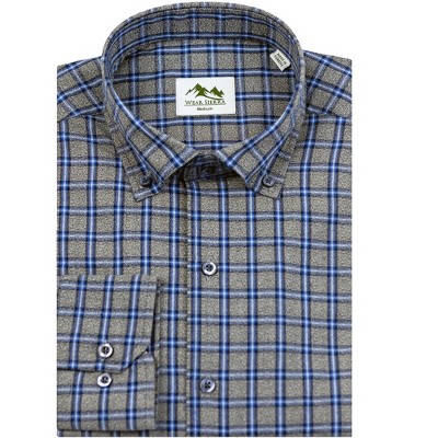Wear Sierra Top Shelf Men's Turkish Cotton Long Sleeve Button Down Shirt in Gray & Blue Plaid, Casual Friday Shirt for Men