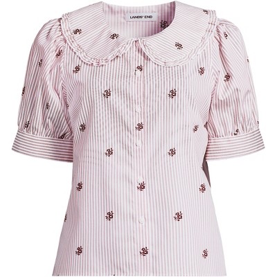 Lands' End Women's Easy Care Puff Sleeve Statement Collar Shirt