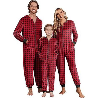Ekouaer Christmas Onesie Matching Family Fleece Hooded One Piece Zipper Long Sleeve Pajamas with Pockets