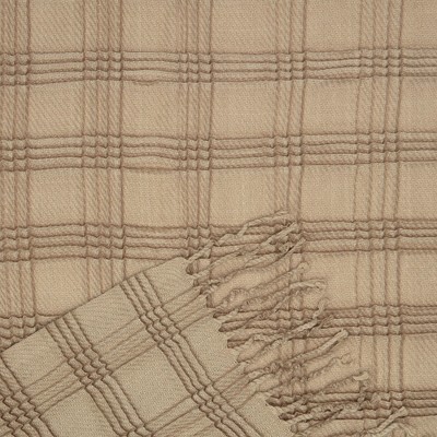 HomeRoots 50" X 67" Cream And Sand Cotton Blend Woven Plaid Throw Blanket with Fringe