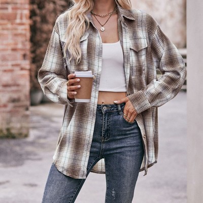 Women's Long Sleeve Button Down Shirts Summer Fall Casual Plaid Collared Business Tops Work Blouses