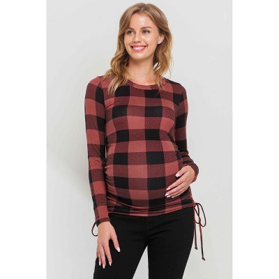Hello Miz Women's Plaid Long Sleeve Side Ruched Maternity Top - Mauve - Medium