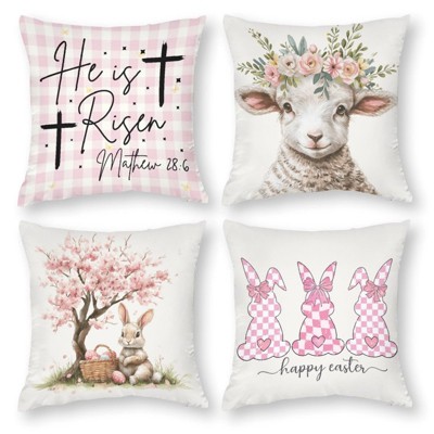 Waterproof Set of 4 Square 18"x18" Pillow Covers for Easter Spring, Buffalo Plaid, 1-Side, Cotton Linen