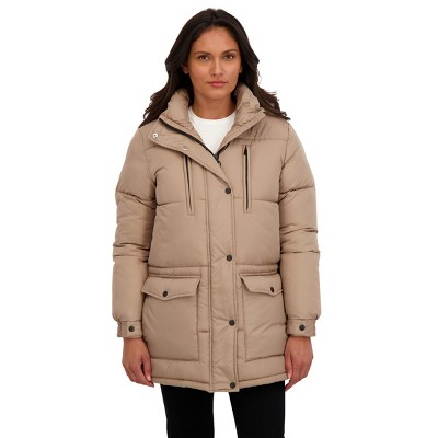 Haute Edition Women's Mid-Length Puffer Parka Coat with Faux Fur-lined Hood