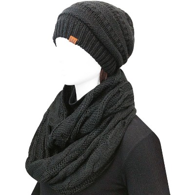 Wrapables Winter Warm Knitted Infinity Scarf and Beanie Hat Set, Red