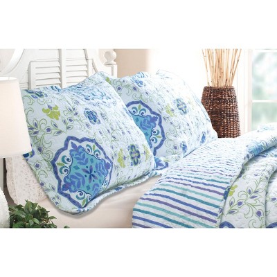 Greenland Home Fashions Medina Indigo Sham with Medallion and Paisley Print, Prewashed Cotton, Reversible Design