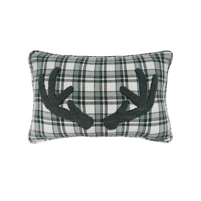 C&F Home Woodland Deer Antlers Plaid Cotton Blend Mini Accent Pillow 14" x 22"