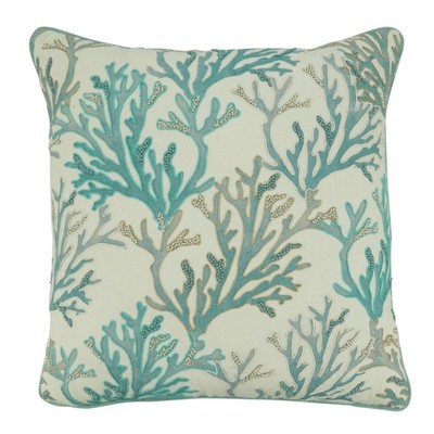 18"x18" Coral Design with Poly Filling Square Throw Pillow Aqua Blue - Saro Lifestyle: Cotton, Indoor, Zipper Closure